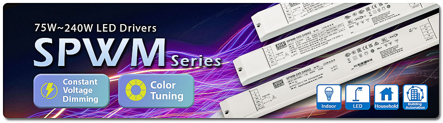 MEAN WELL has been the industry leader of LED lighting drivers and smart lighting applications for decades. The PWM series of constant voltage dimmable LED drivers are well-received by the market. To further enrich the constant voltage dimming/color tuning LED driver product portfolio, MEAN WELL is proud to introduce the SPWM series, which complement the existing PWM series.