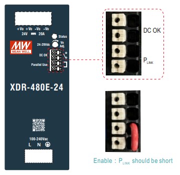 The XDR-E series supports up to 4 units in parallel, reaching a maximum power of 3840W (using XDR-960E). Compared with traditional wiring methods, the XDR-E greatly simplifies the process—parallel function is activated simply by shorting the PLINK terminals on the front panel. For more details, please refer to the XDR-E datasheet.